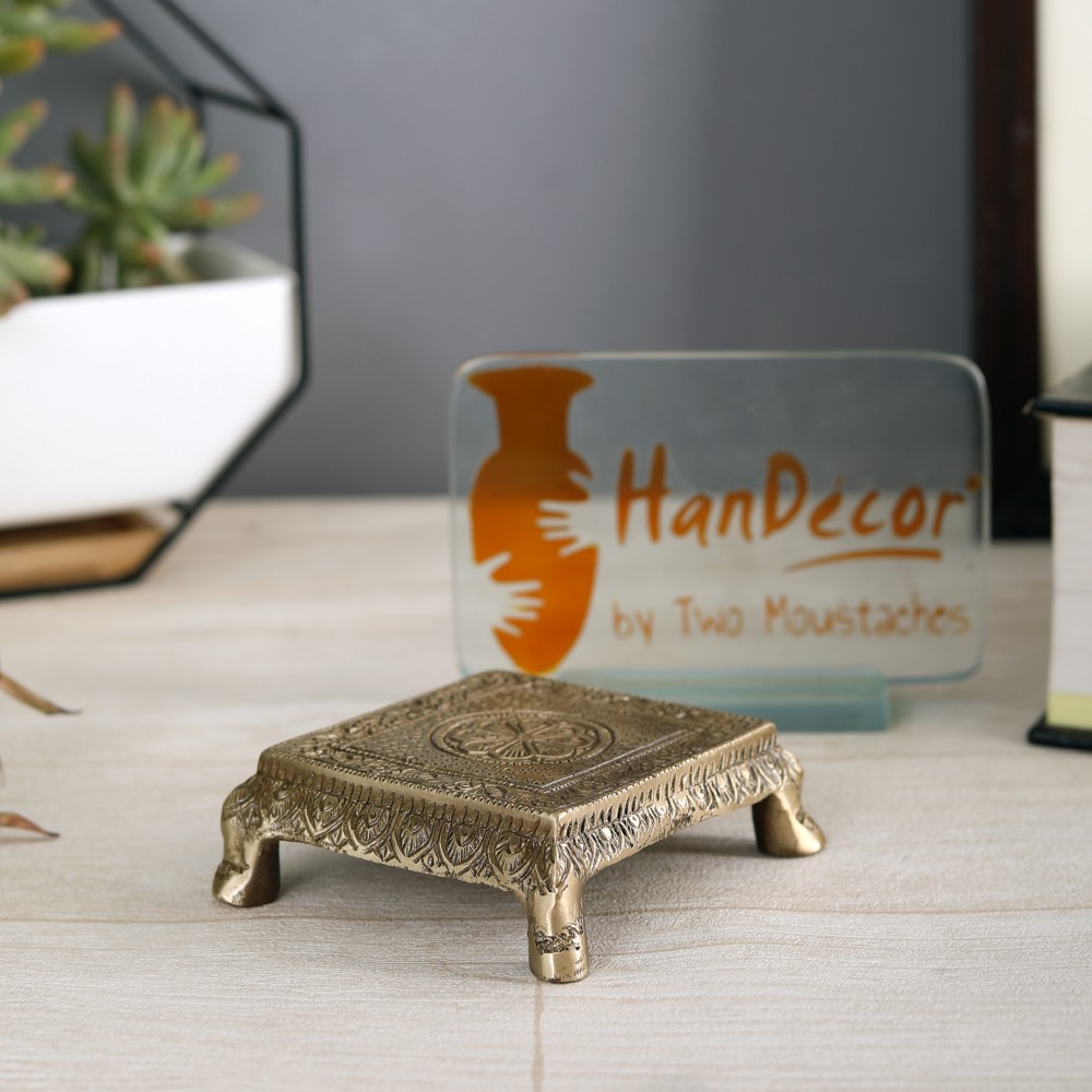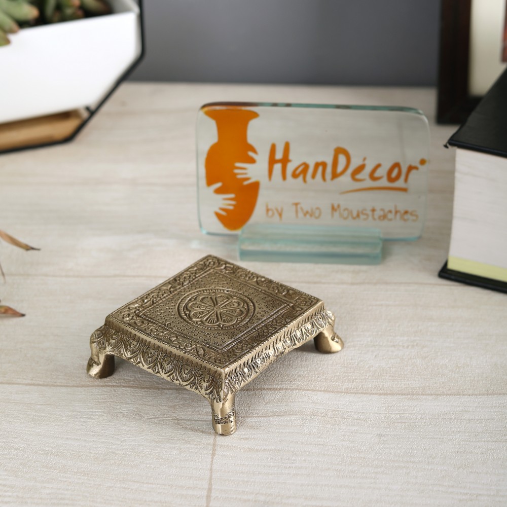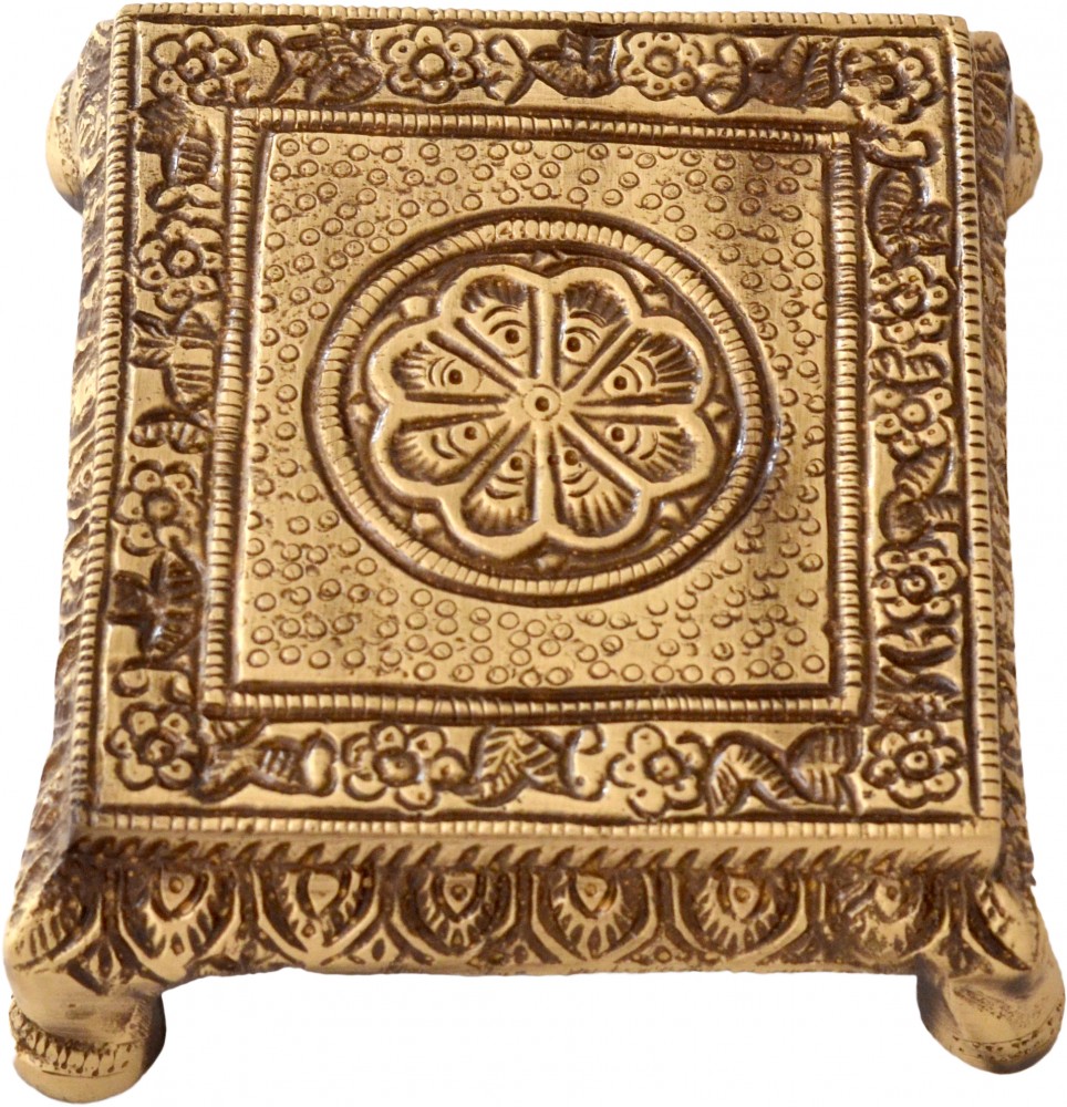 Bring home this decorative Brass Pooja Chowki and place it in your pooja room. Its gleaming charm will be noticed and praised by everyone. It comes with an elegant design making it a desirable pooja accessory for any home. You can place your pooja thaali atop it and chant your hymns and verses. It will blend along beautifully within the divine aura of your pooja room and will also become your favourite.