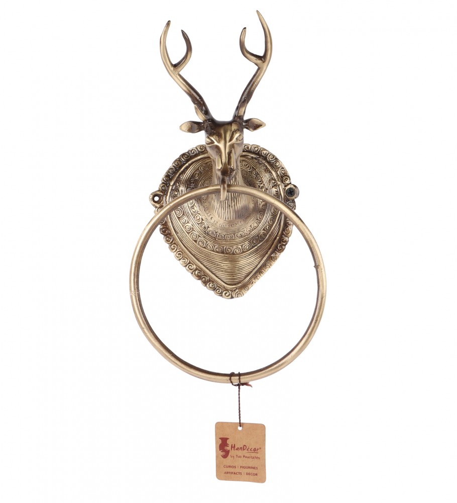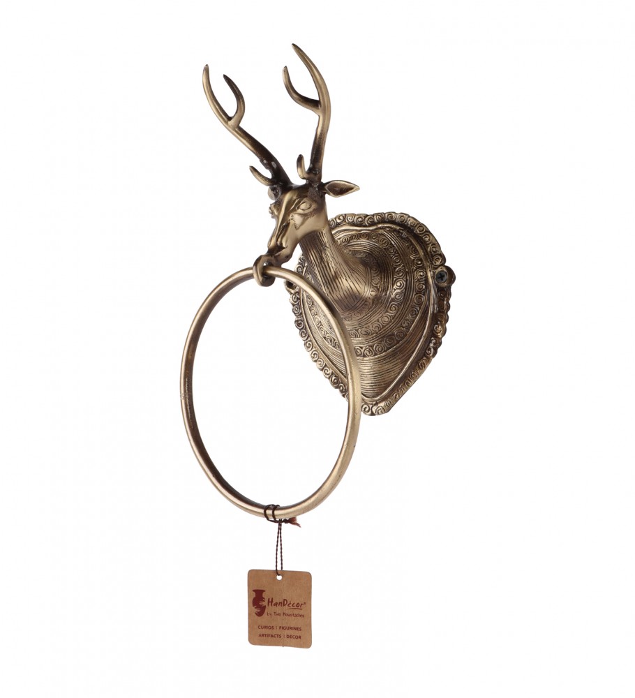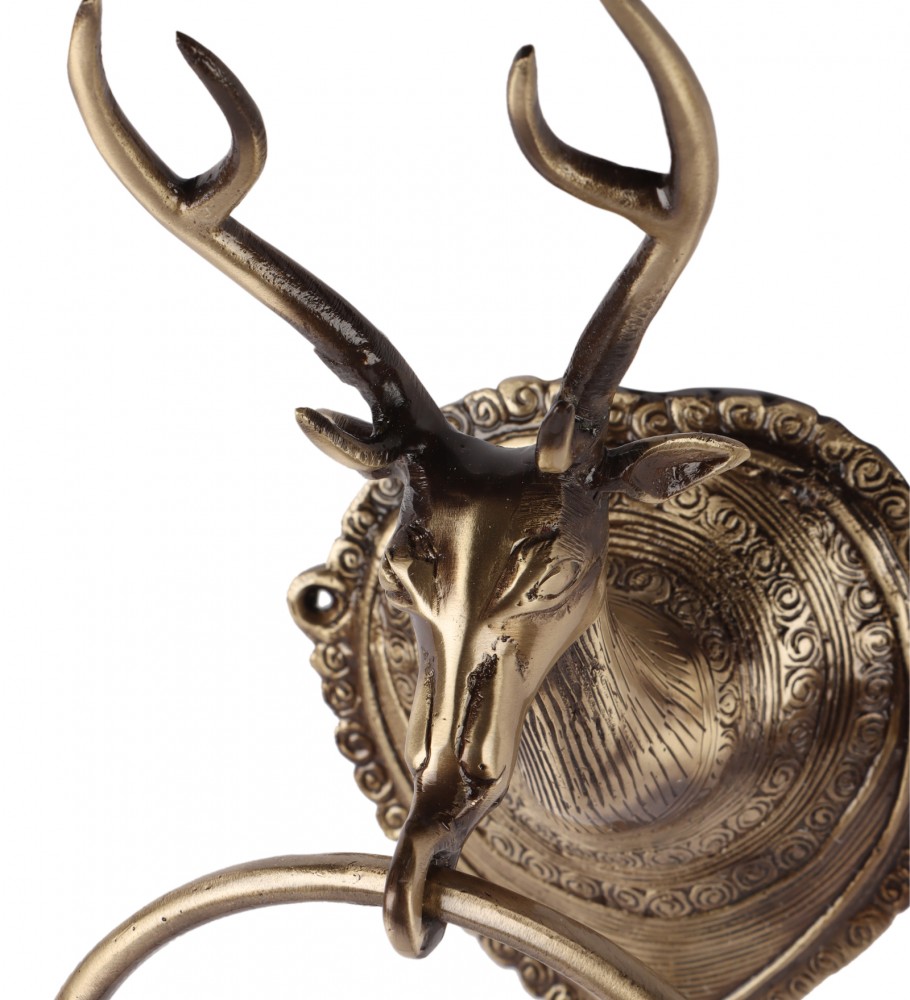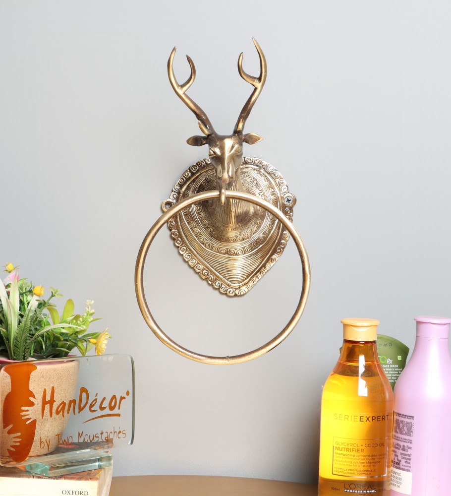 The collection of Towel Rings/Hangers from Two Moustaches is amazing. The antique Towel Hangers that we have made are of brass metal. It would turn out to a great tip for interior. This Towel Hanger has been diligently handcrafted by skilled artisans. The astonishingly sculpted towel hanger with Royal Stag head design, made with brass is created to give that stylish ancient look to your interior. This towel hanger will create a statement look in your home. You can never go wrong with this one. The antique style of this towel hanger is its USP. It gives an antique luxurious feel. This towel hanger will definitely be an attraction point in your home décor.