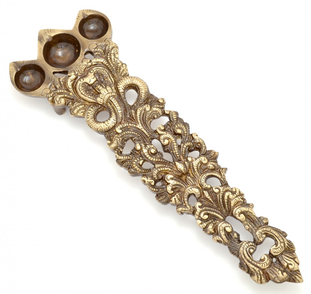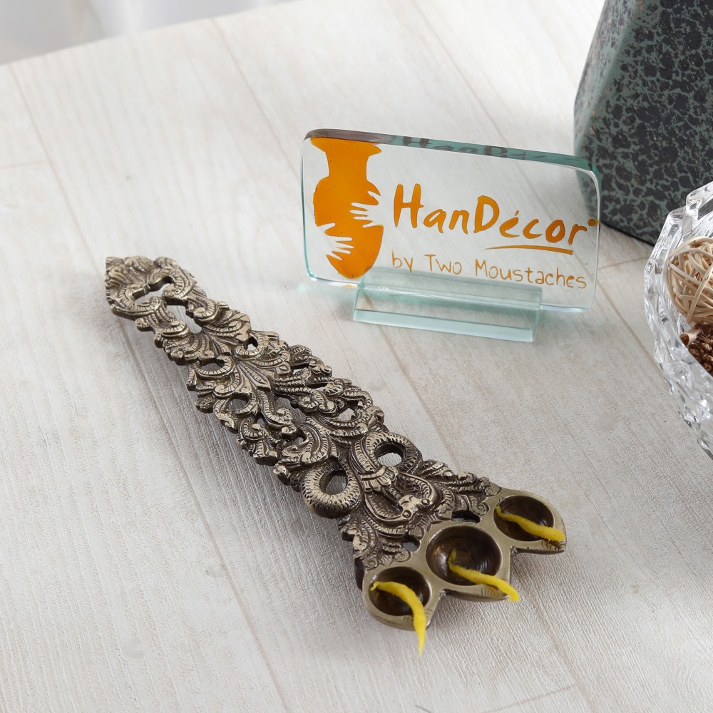 This beautifully accented Brass Sheshnag Pooja Spoon is used for offering worship during puja. You can use this spoon as a decorative item in your home.This item has an antique look and thus is excellent in your home or temple and is suitable for gifting purpose as well.