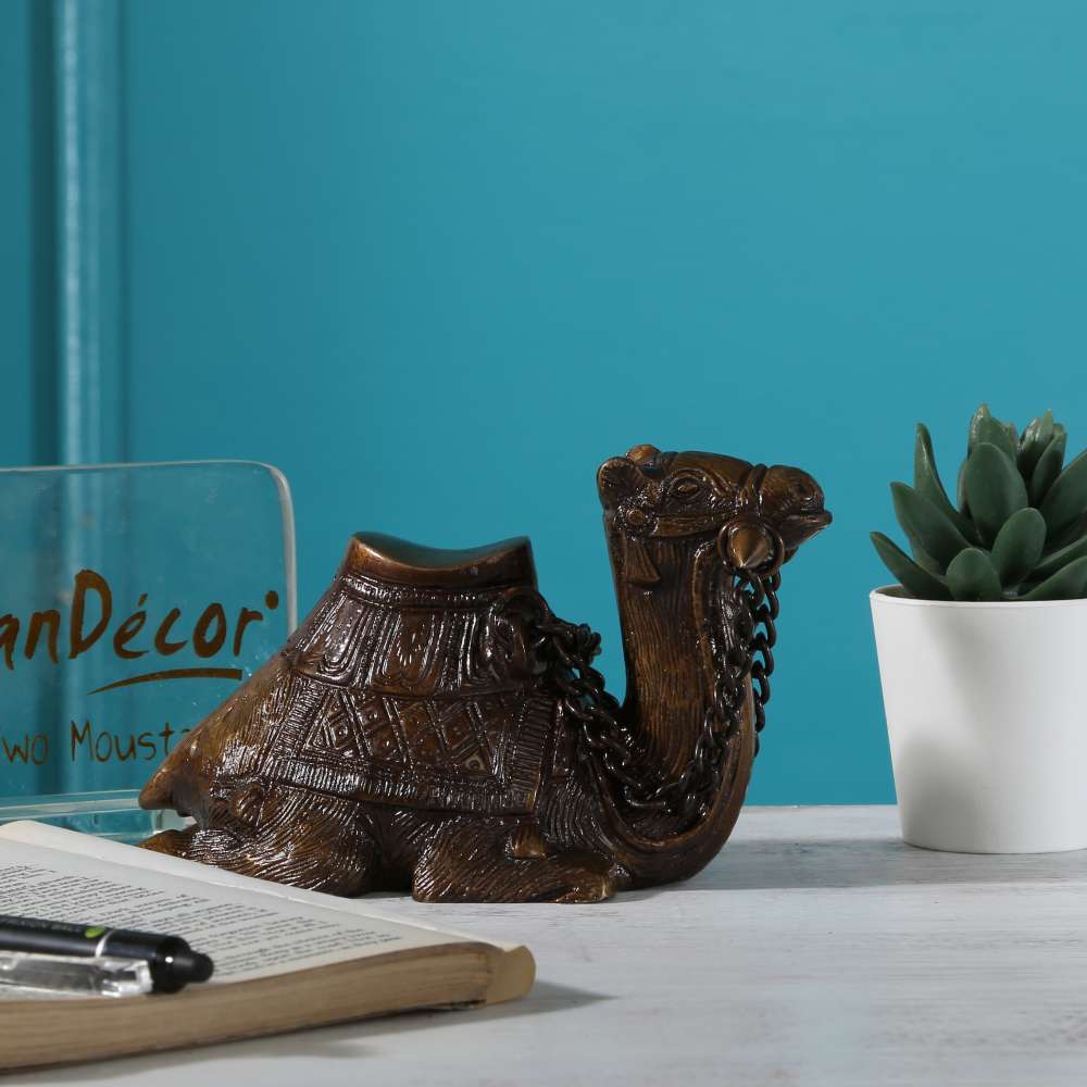 Handecor Sitting Camel Showpiece is a conserving seated camel art carved by the artisans of Two mustaches Brand. Camels are known to serve as incredibly skilled guides of life. They are superiorly equipped for the long haul from an energetic or spiritual stand point of life. With all the daunting travel ahead of us, camel is an energetic guide on our path. This seated camel showpiece of brass material symbolizes a conserving gesture for human life and adds up to the appeal of your home