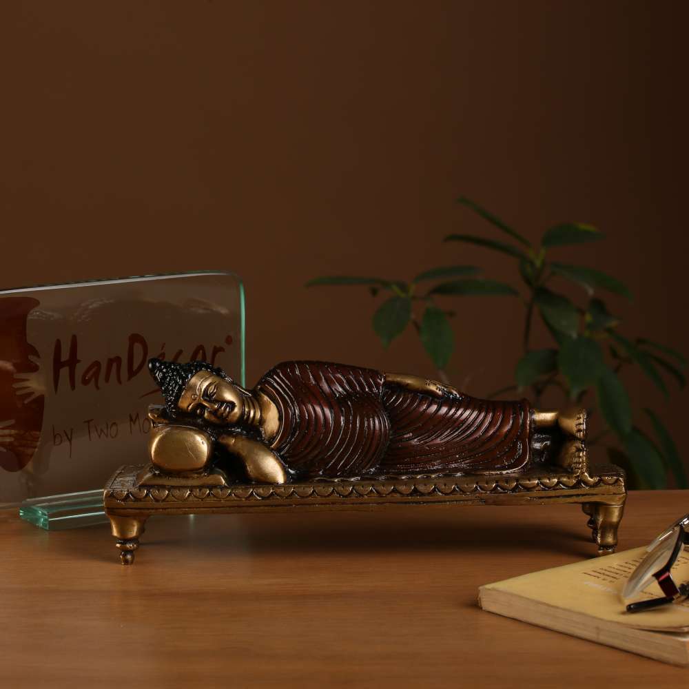 Calm and peace exudes from Buddha's structure and so does it from this showpiece of Buddha. It shows the enlightened teacher taking some rest. Its distinctly designed structure makes it an absolute must have for any home. You can place it atop console tables or sideboards and beautify any surface. Its artistic and elegant structure will attract its onlookers and will also prove to be a charming show piece for any area.