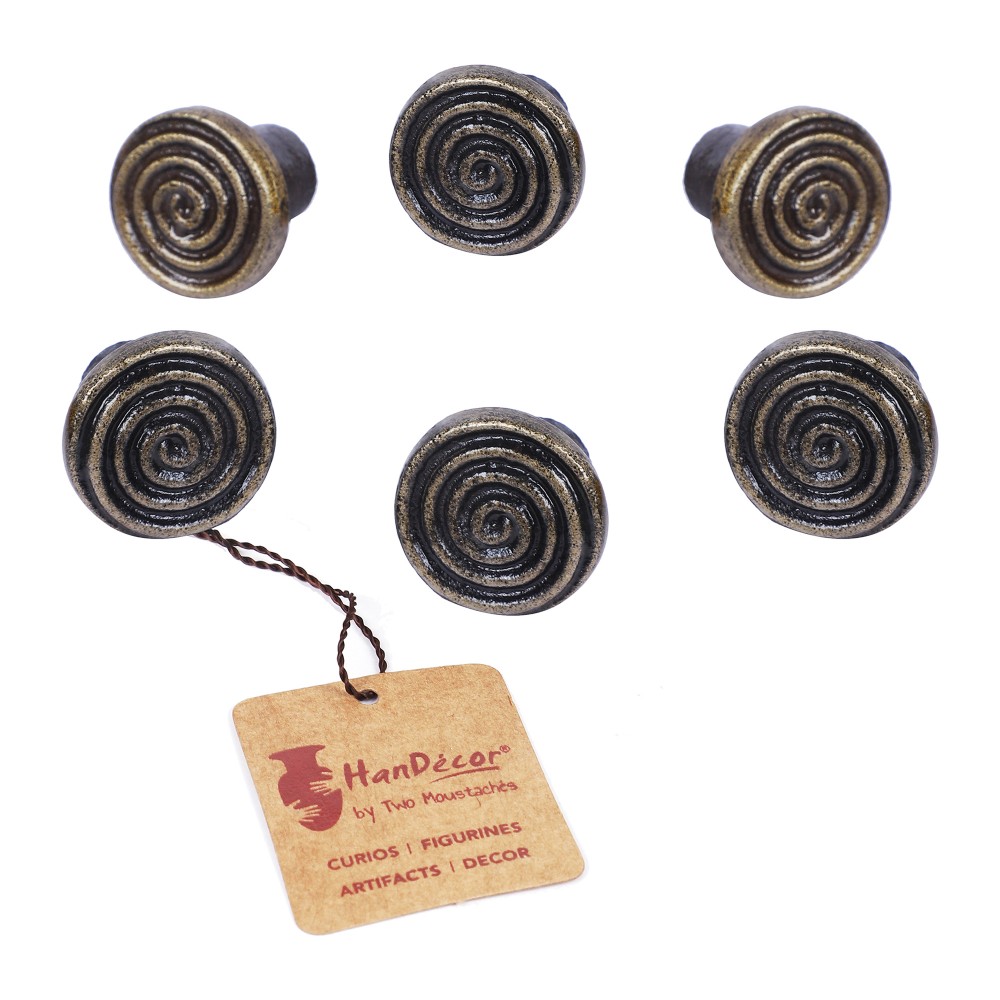 Add a personal touch to a chest of drawers with this metal spiral drawer knob handle. You push and pull your drawers, why not make it more than just functional? Make it decorative, too! Antique Brass Finished Metal Spiral Pull is perfect for adding a special touch and upgrade to your furniture and home accents. Give those desk, dresser, and cabinet drawers a face lift with this lovely handle. This drawer/wardrobe knob has a beautiful and eye-catching design, inspired from the spiral. Our unique knobs collection can be used for updating the furniture or refurbishing a home or a kitchen cabinet. The Knobs are made of solid metal and are of High-end International Quality along with durable Metal finish. Handcrafted in iron with utmost detailing and antique brass finish, the metal knobs infuses vibes into the home and add a utility solution. Anyone visiting you will be delighted and transported to a good mood as soon as they lay their eyes on this stunning knob.