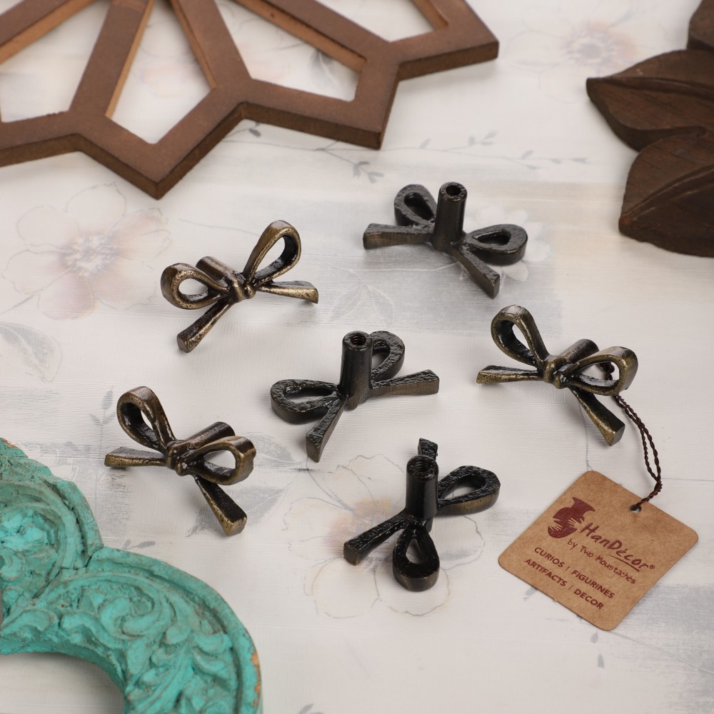 Add a personal touch to a chest of drawers with this metal tie knot design drawer knob handle. You push and pull your drawers, why not make it more than just functional? Make it decorative, too! This Metal Pull is perfect for adding a special touch and upgrade to your furniture and home accents. Give those desk, dresser, and cabinet drawers a face lift with this lovely handle. This drawer/wardrobe knob has a beautiful and eye-catching design, inspired from the tie knot. Our unique knobs collection can be used for updating the furniture or refurbishing a kitchen cabinet. The Knobs are made of solid metal and are of High-end International Quality along with durable antique brass finish. Handcrafted in iron with utmost detailing and antique brass finish, the metal knobs infuses vibes into the home and add a utility solution. Anyone visiting you will be delighted and transported to a good mood as soon as they lay their eyes on this stunning knob.