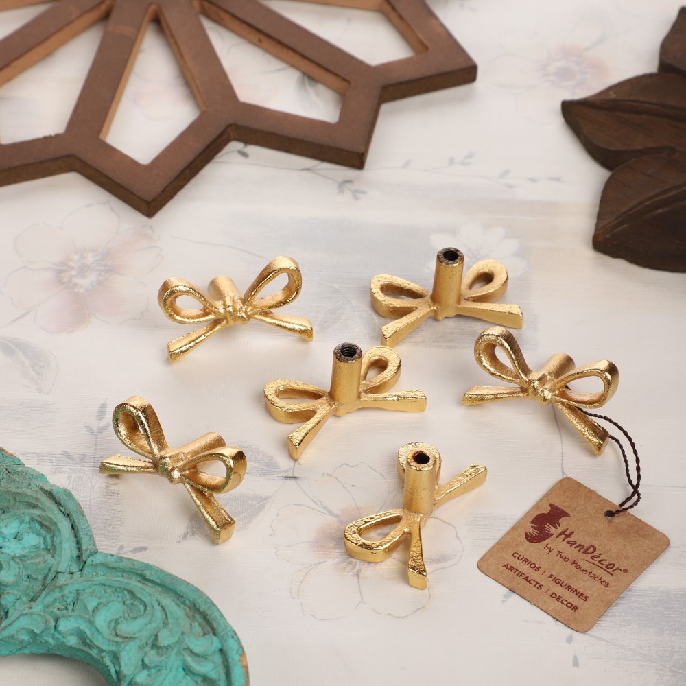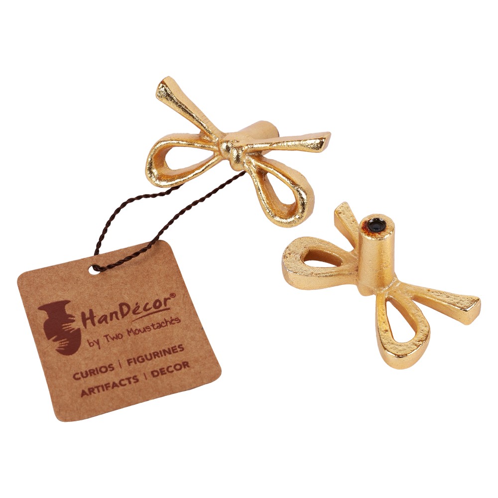 Add a personal touch to a chest of drawers with this metal tie knot design drawer knob handle. You push and pull your drawers, why not make it more than just functional? Make it decorative, too! This Metal Pull is perfect for adding a special touch and upgrade to your furniture and home accents. Give those desk, dresser, and cabinet drawers a face lift with this lovely handle. This drawer/wardrobe knob has a beautiful and eye-catching design, inspired from the tie knot. Our unique knobs collection can be used for updating the furniture or refurbishing a kitchen cabinet. The Knobs are made of solid metal and are of High-end International Quality along with durable golden finish. Handcrafted in iron with utmost detailing and golden finish, the metal knobs infuses vibes into the home and add a utility solution. Anyone visiting you will be delighted and transported to a good mood as soon as they lay their eyes on this stunning knob.