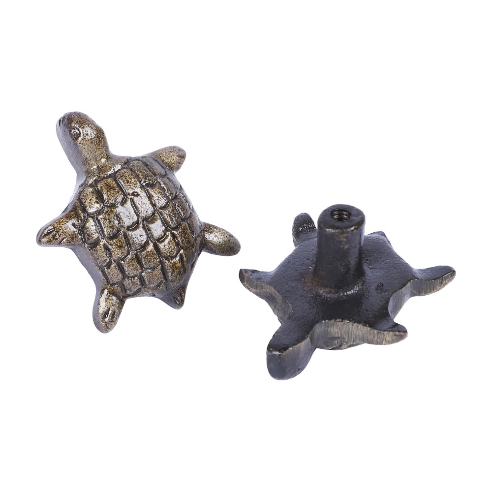 Add a personal touch to a chest of drawers with this modern design drawer knob handle. You push and pull your drawers, why not make it more than just functional? Make it decorative, too! Antique Brass Finished Tortoise Design Metal Pull is perfect for adding a special touch and upgrade to your furniture and home accents. Give those desk, dresser, and cabinet drawers a face lift with this lovely handle. This drawer/wardrobe knob has a beautiful and eye-catching design. Our unique knobs collection can be used for updating the furniture or refurbishing a home or kitchen cabinet. The Knobs are made of solid metal and are of High-end International Quality along with durable Metal finish. Handcrafted in iron with utmost detailing and antique brass finish, the metal knobs infuses vibes into the home and add a utility solution. Anyone visiting you will be delighted and transported to a good mood as soon as they lay their eyes on this stunning knob.