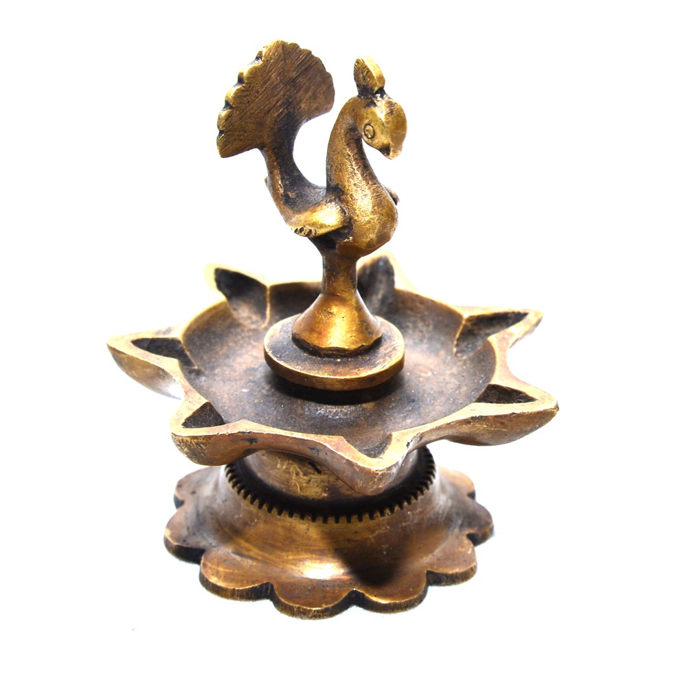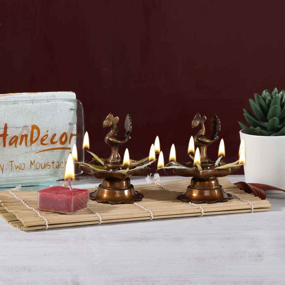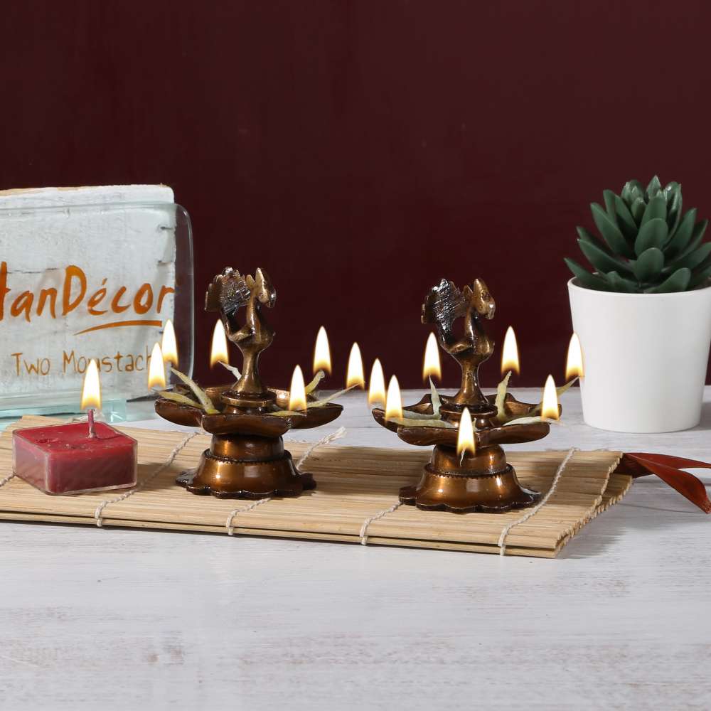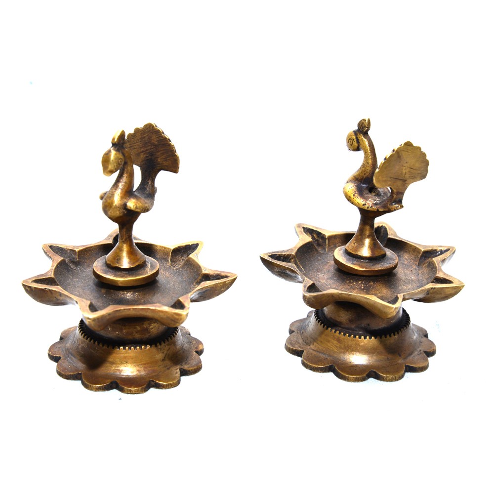 Light up your home with this beautiful Peacock Diya. Crafted from quality brass material, this golden colored diya features a peacock inside a traditional diya. Gift your loved ones this attractive diya set for special occasions.