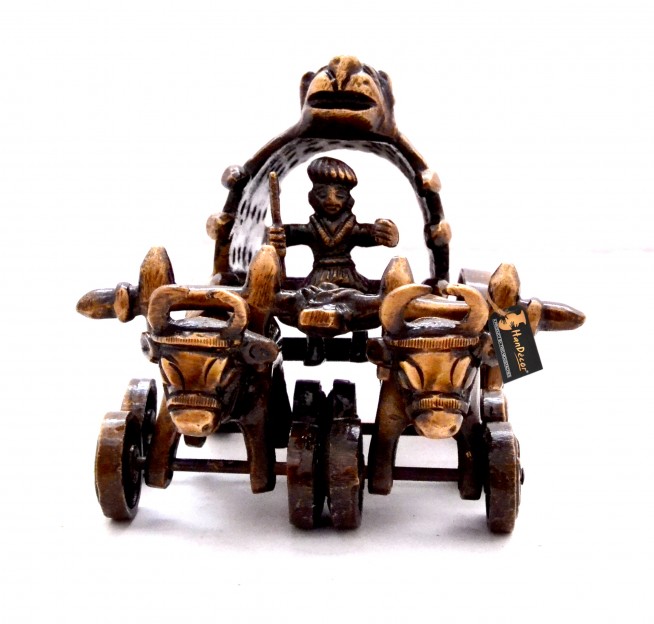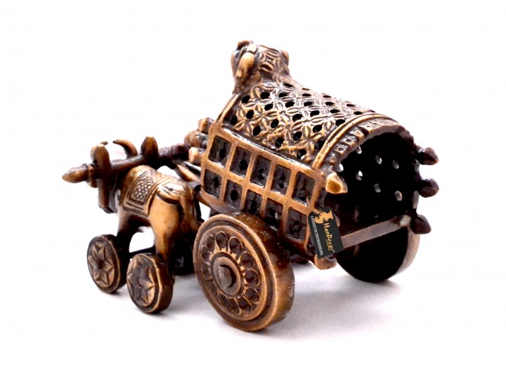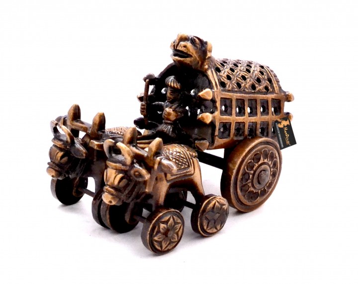 A Charming and wonderful decorative item for homes and offices. Gift this bullock cart sculpture as a wedding or anniversary gift to friends and dear ones. They will surely thank you for your unique choice. The beautiful sculpture is in golden color and is made of brass. It will definitely look great as a showpiece for sure.