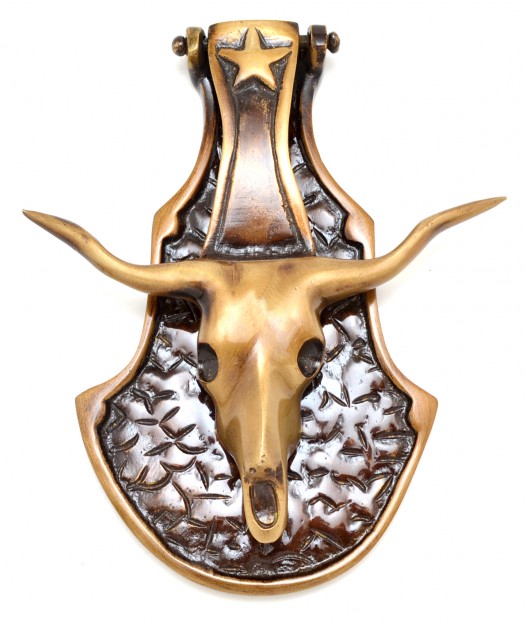 Even door knockers can come with attractive and striking themes these days. This one from Two Moustaches is a prime example, particularly for its bull head theme and suitably contrasting golden and brown combination. This is made of brass.