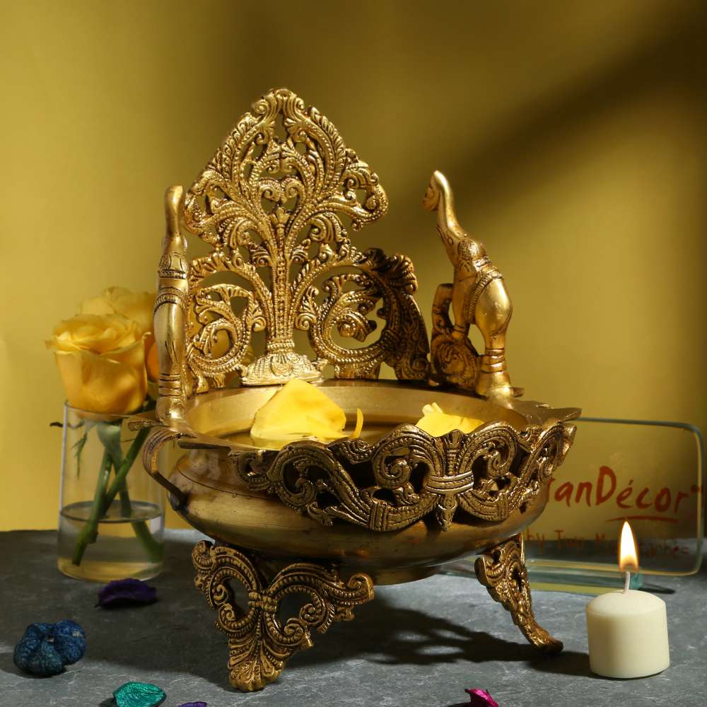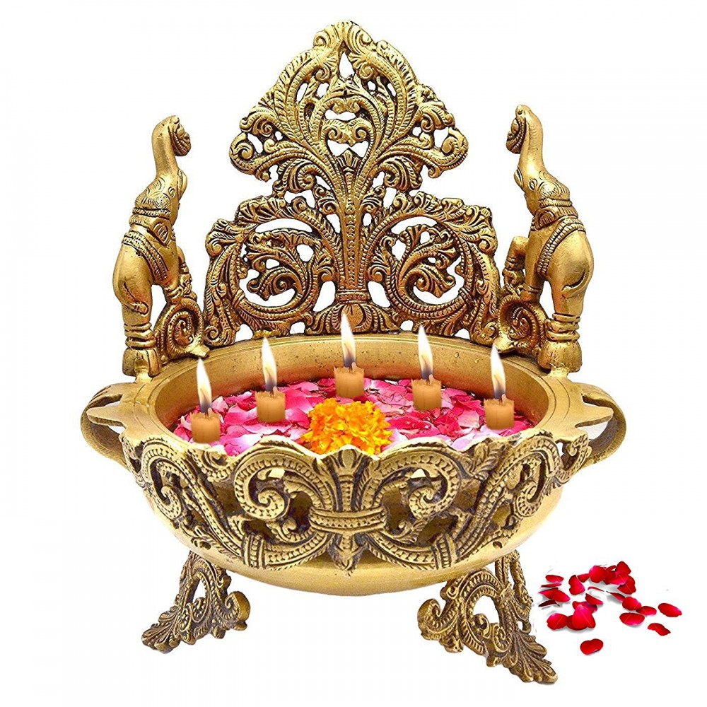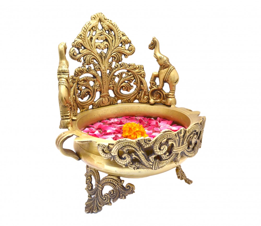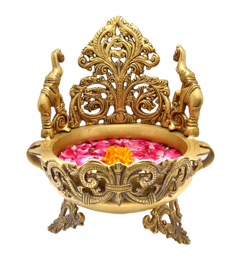 It has a distinctive shape that makes a handsome addition to the decor of any room, and you can enjoy the beauty of it. It has been produced using sand casting techniques that have been passed down through generations of skilled metalworkers which brings an authentic Indian Urli.