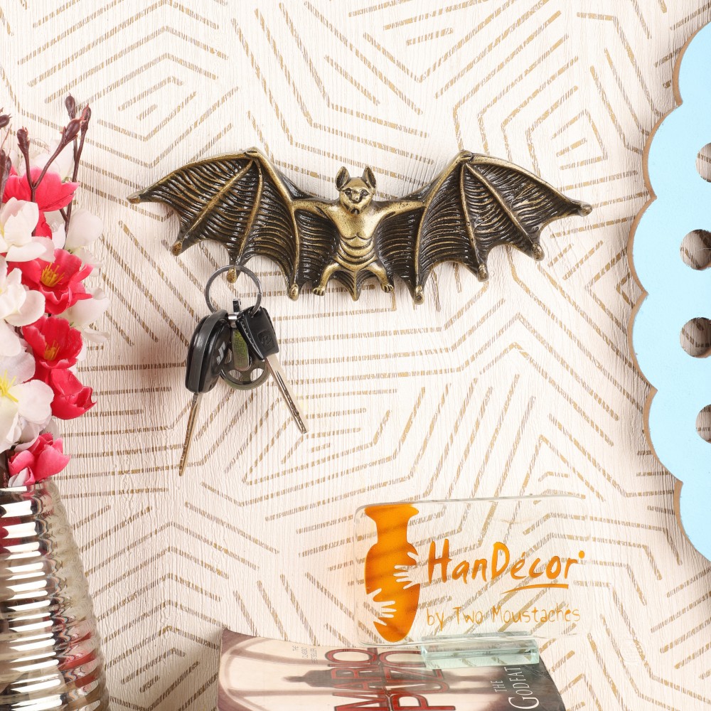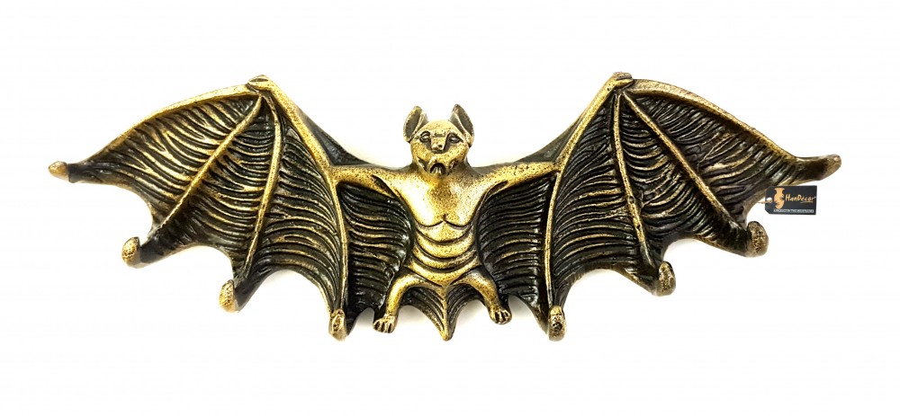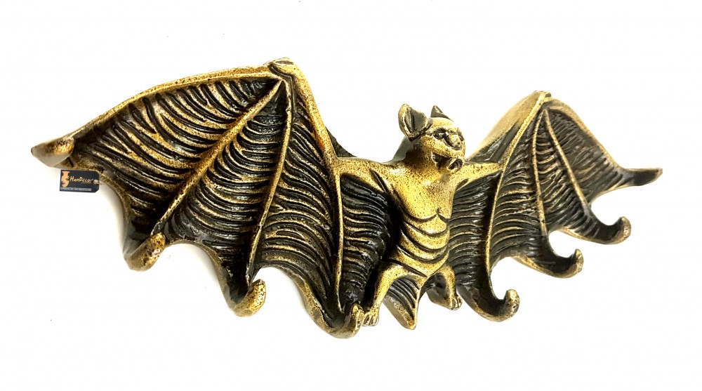 Magical as a sculpture alone, this eerily realistic bat is also ready to organize up to 8 keys! Our wall masterpiece is cast in quality designer iron with antique brass finish to capture every spooky detail, from spiny wings to pert ears. What better way to creep out unsuspecting guests than to place the vampire bat pet of blood sucking Count Dracula to hold keys in your kitchen?