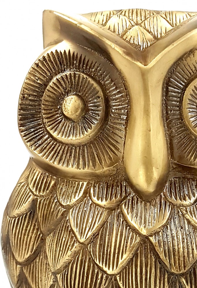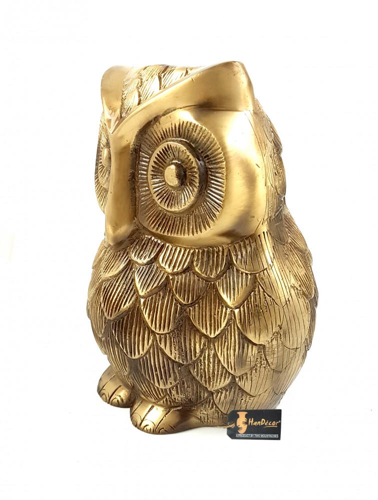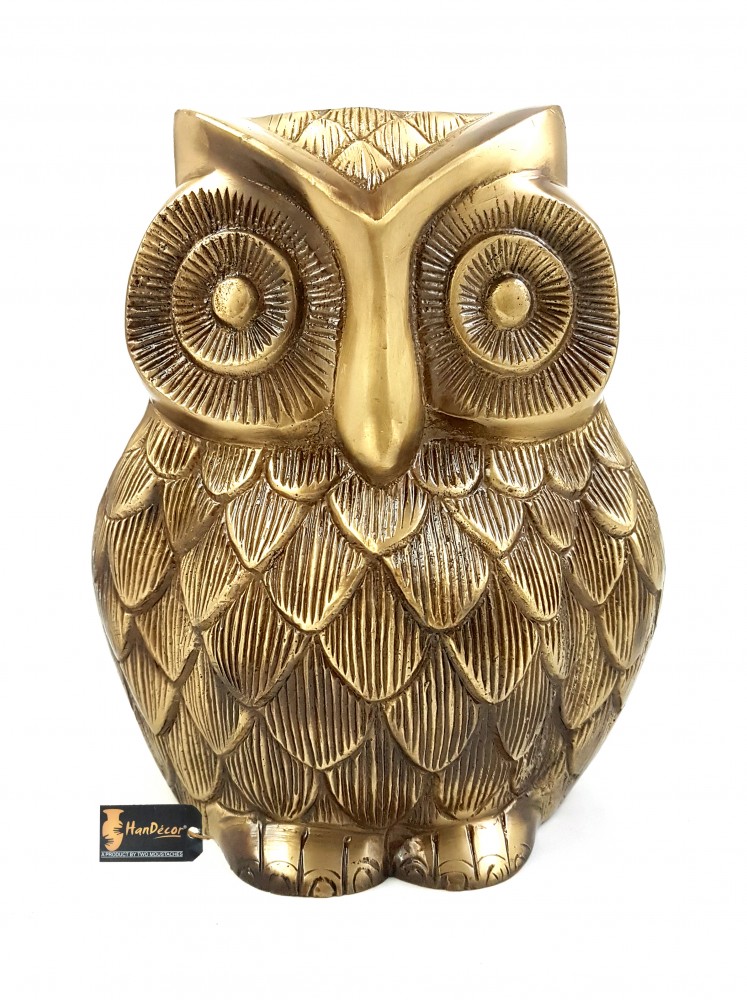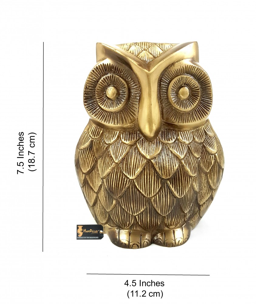 The brass sculpture of owl, the vehicle of Goddess Lakshmi is to elevate the sanctity of your home or work space. This unique art work of rich brass is handcrafted by skilled artisans using conventional techniques.