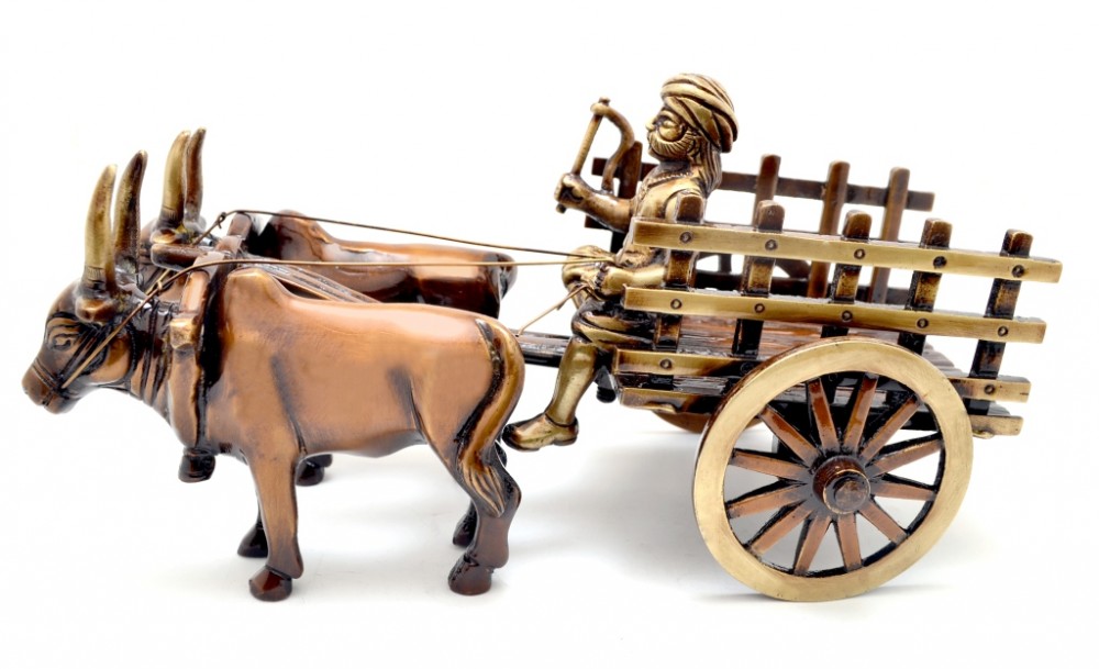 This exotic product is from the house of Two Moustaches. Statues and artifacts like this one are a toast to exclusivity. This depiction of a man riding a bull cart statue looks awesome. This is made of brass and looks really elegant in antique brown. This will definitely draw the attention of your guests with elan.