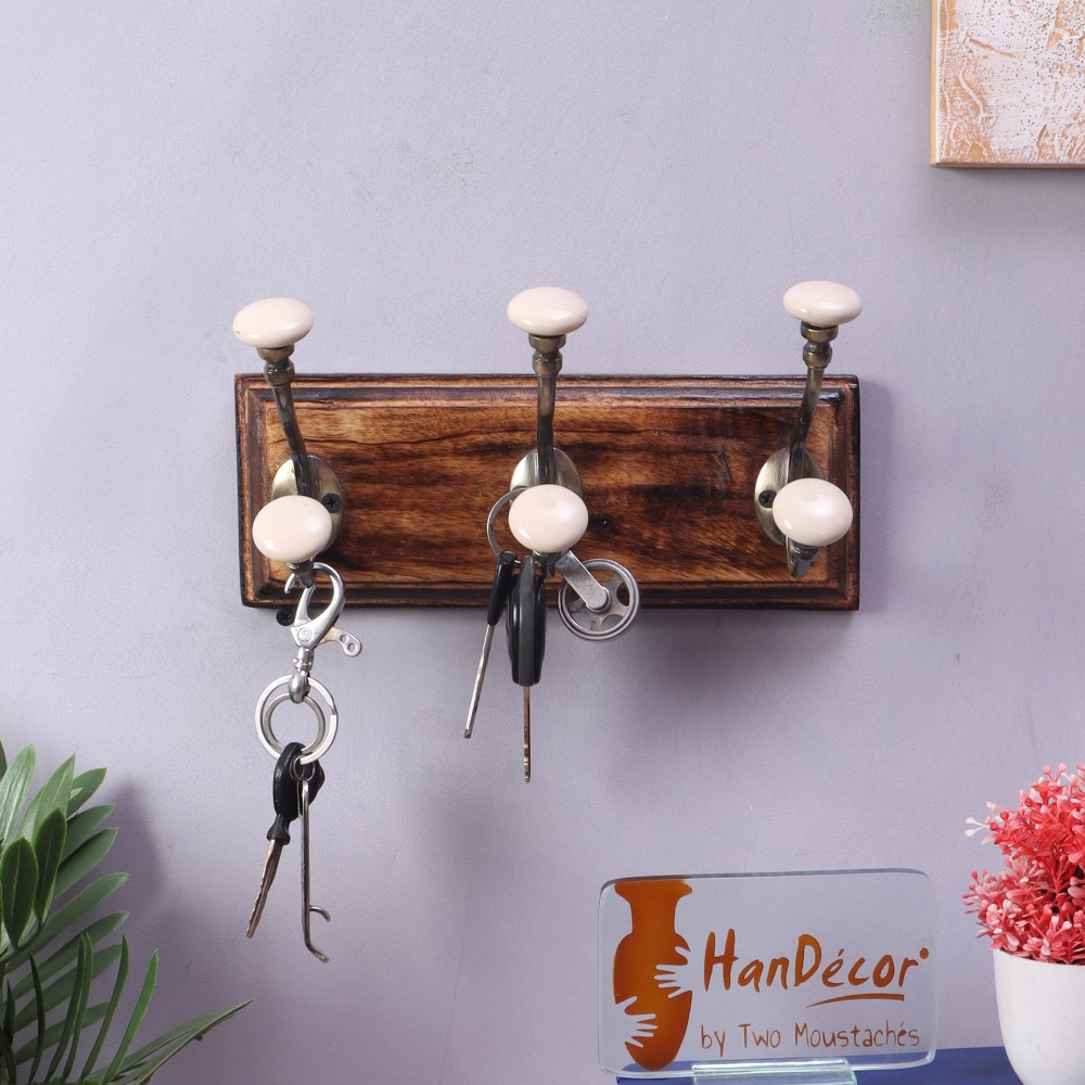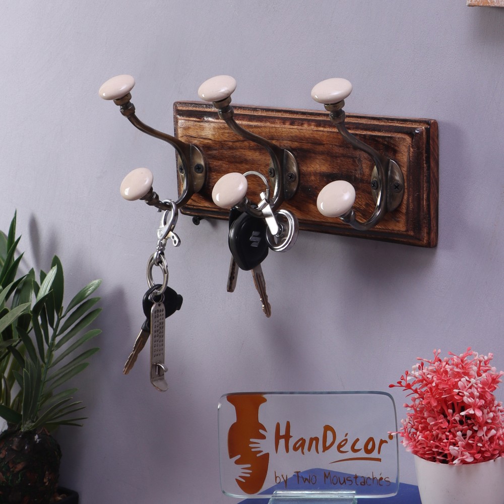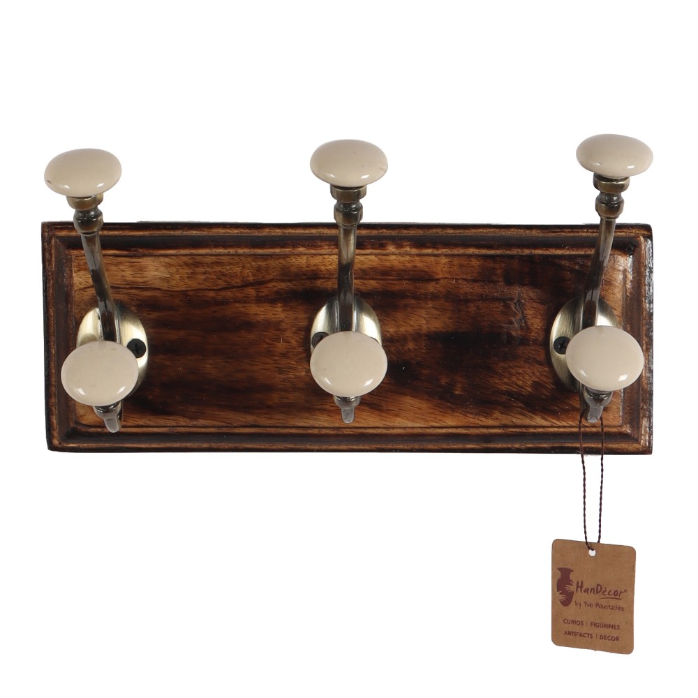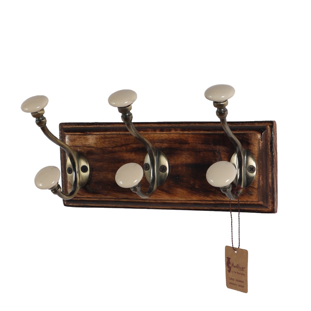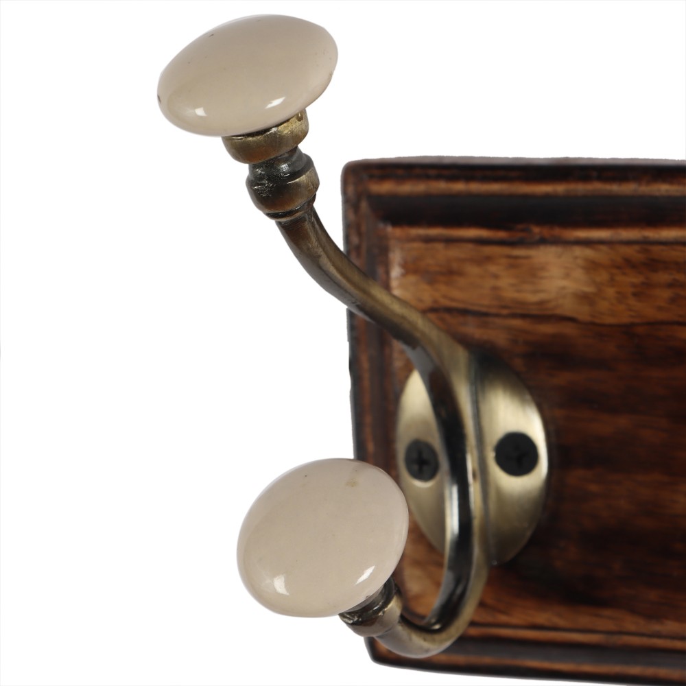 Offering charming style and everyday function, this Two Moustaches wall mounted coat rack makes it easy to get organized and clean up unwanted clutter. The panel of 3 graceful antique finished hooks topped with stylish knobs, creates added storage space-perfect for hanging convenience in lieu of a closet or a cumbersome floor-standing coat rack. The versatile wall-mounted unit makes a great choice for small spaces or high-traffic areas around the home or office. The sturdy wall-mounted coat rack provides a horizontal row of three hooks for durable, reliable storage space. Use the three-hook coat rack in an entryway, foyer, or front hallway to keep jackets, bags, and backpacks up off the floor. The stylish hooks also work well in a bathroom, offering additional hanging space for bathrobes and beach towels, or in a bedroom to help maintain a tidy appearance and to prevent piles of clothes from accumulating. This wall mounted coat rack installs quickly and easily and mounting hardware come included in the package.