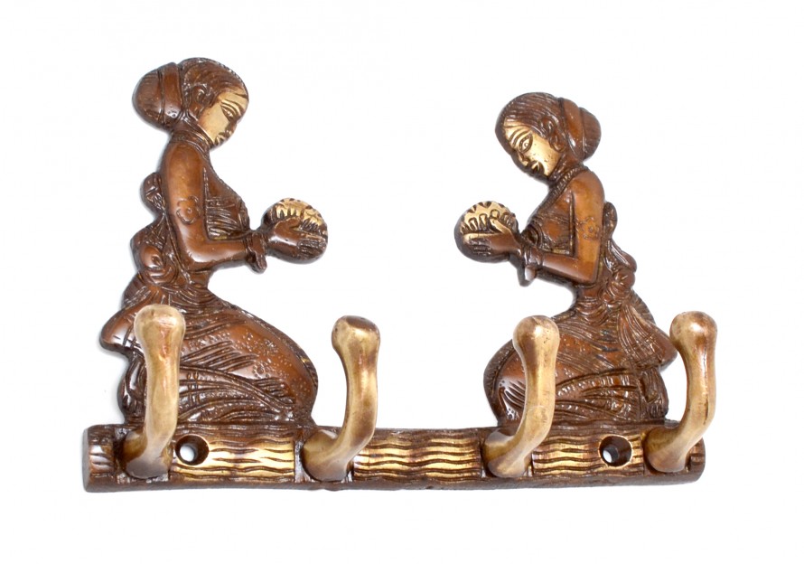 Organize your valuable keys by hanging them on to this beautiful Welcome Lady Key Holder from the house of Two Moustaches. The elegant figurines of two ladies in the traditional welcoming pose offer an added attraction to this key holder with four hooks.